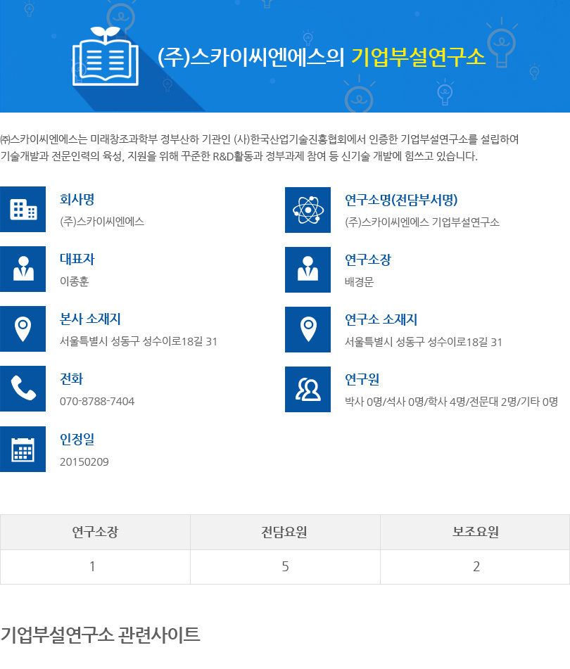 대표이사: 이종훈, 김중태 / 주소: 서울특별시 성동구 성수일로 55 SK테크노빌딩 5층